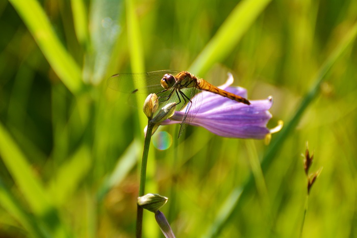 コバギボウシに止まるトンボの姿です(2023年7月25日)。