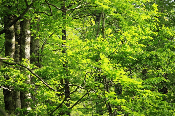 この日もブナの原生林の新緑は本当に美しい光景でした(2024年5月24日)。