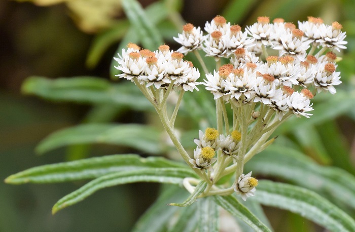 帝釈山へ向かう針葉樹林帯を抜ける林道脇にて、多くの群生の姿を魅せるヤマハハコ(2017年10月2日)。